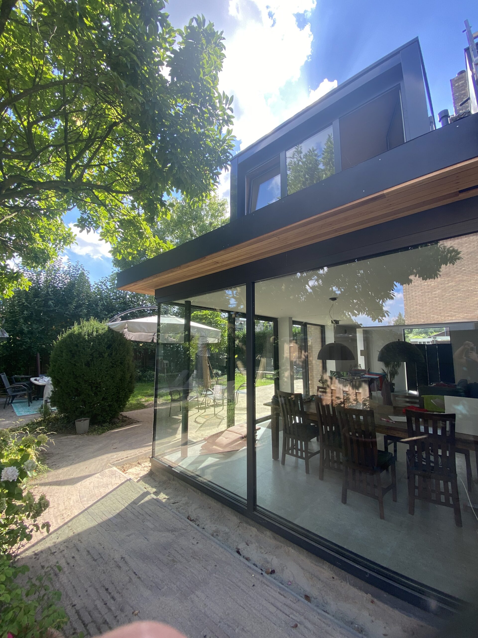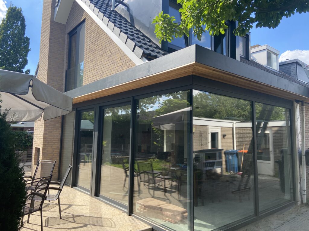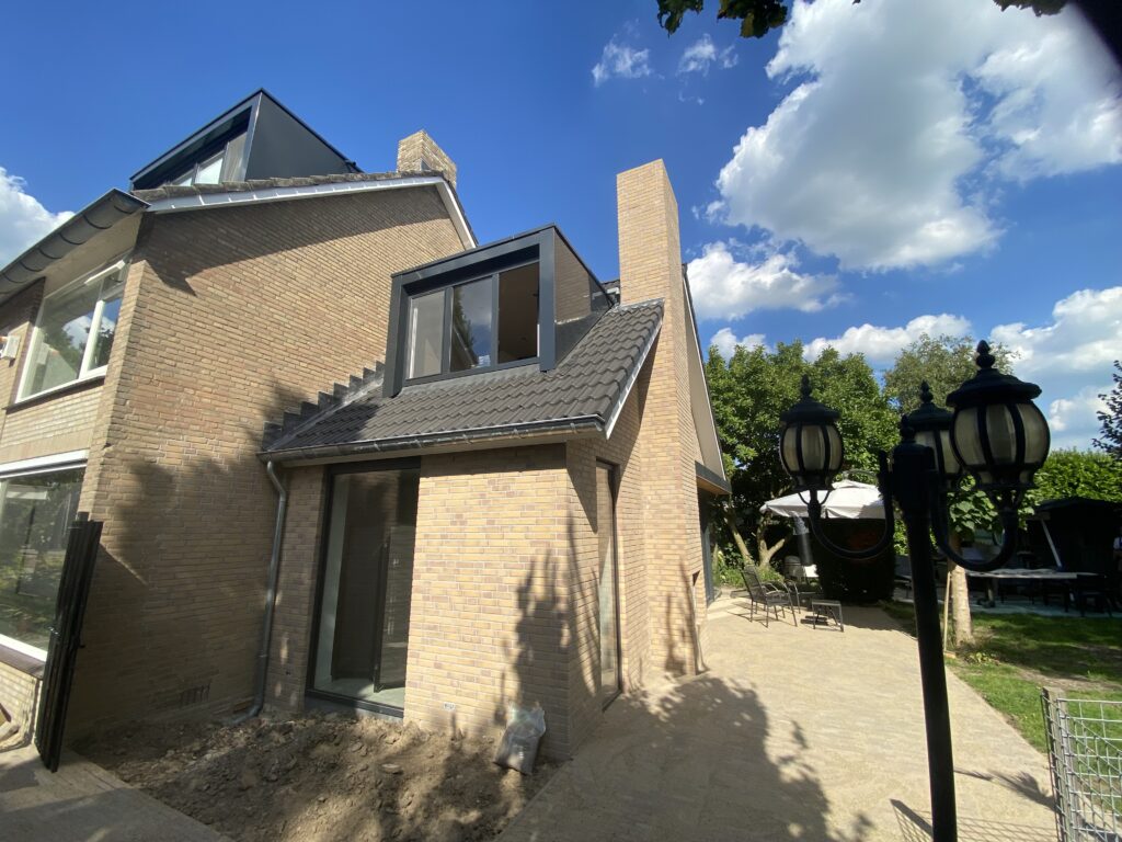 Verbouwing & Uitbouw Woonhuis Locatie: Houten Bij dit project hebben wij een uitbouw geplaatst aan een hoekwoning in Houten.De uitbouw heeft 2 dakkapellen en veel aluminium kozijnen wat er voor zorgt dat er veel lichtinval is in de woning.
